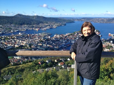 Sissel and I take the cable car up to Mount Floyen, which seems to be a favorite spot for hikers and bikers, even though it’s like an eighty degree angle. At the top, we look over Bergen and soon trample through the forest to the wooden troll statues that are scattered amongst the trees, covered in moss and ivy. As I huff and puff on the trek back down Mount Floyen, my 76-year-old grandmother parades down in her Norwegian sweater like she was born here or something.