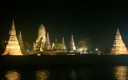 We get to see the stunning Ayutthaya Historical Park at night, which P.A. runs over to take pictures of, even though I’m sure he has now seen it countless times. However, once I see it lit up like this, too, I can kind of understand why he doesn’t get tired of it.